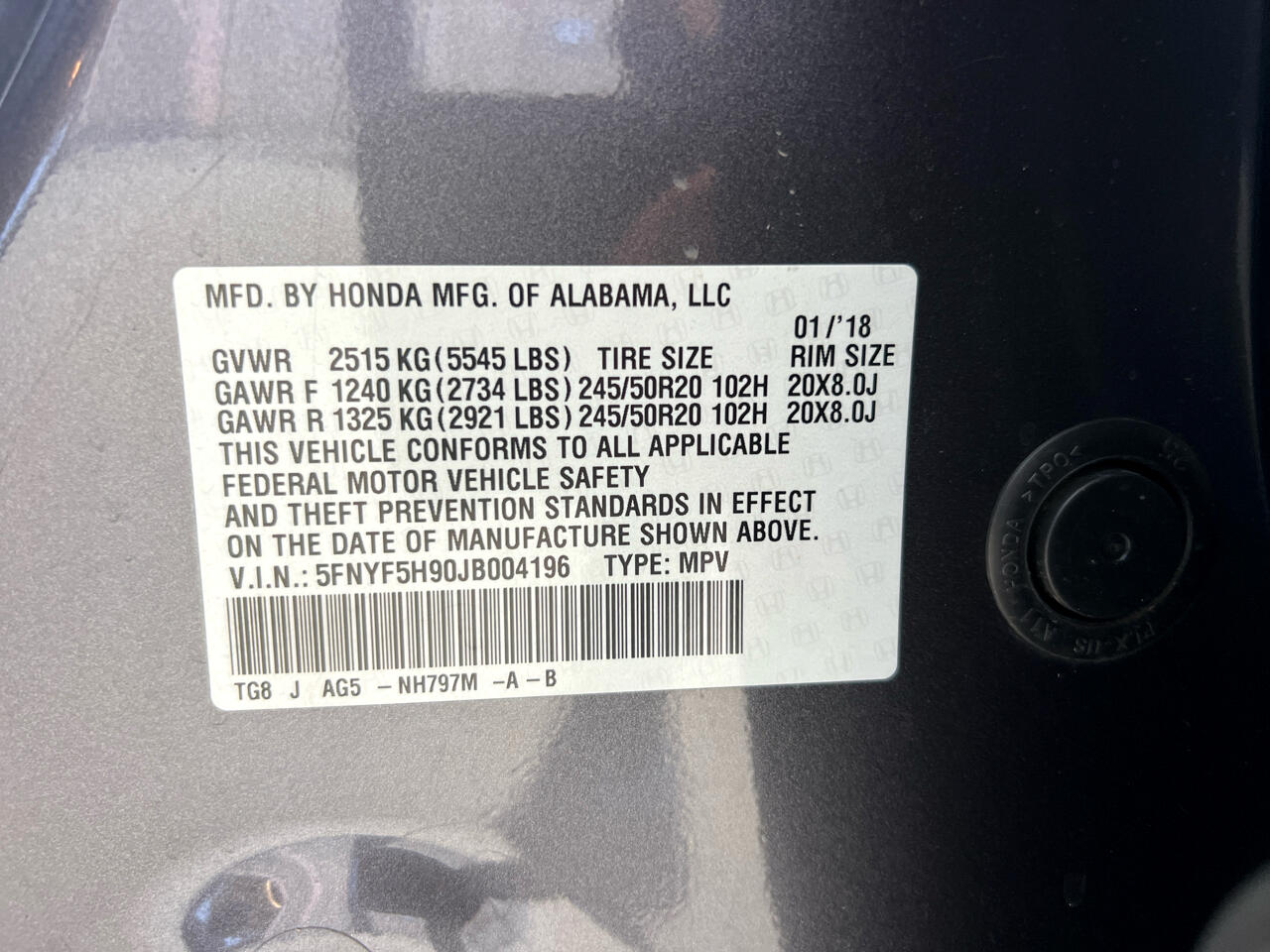 5FNYF5H90JB004196